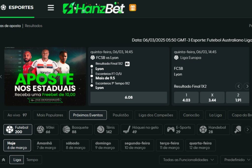 A variedade é uma das grandes forças da HanzBet. Cada modalidade esportiva traz uma ampla gama de mercados, desde os mais populares até os mais específicos.