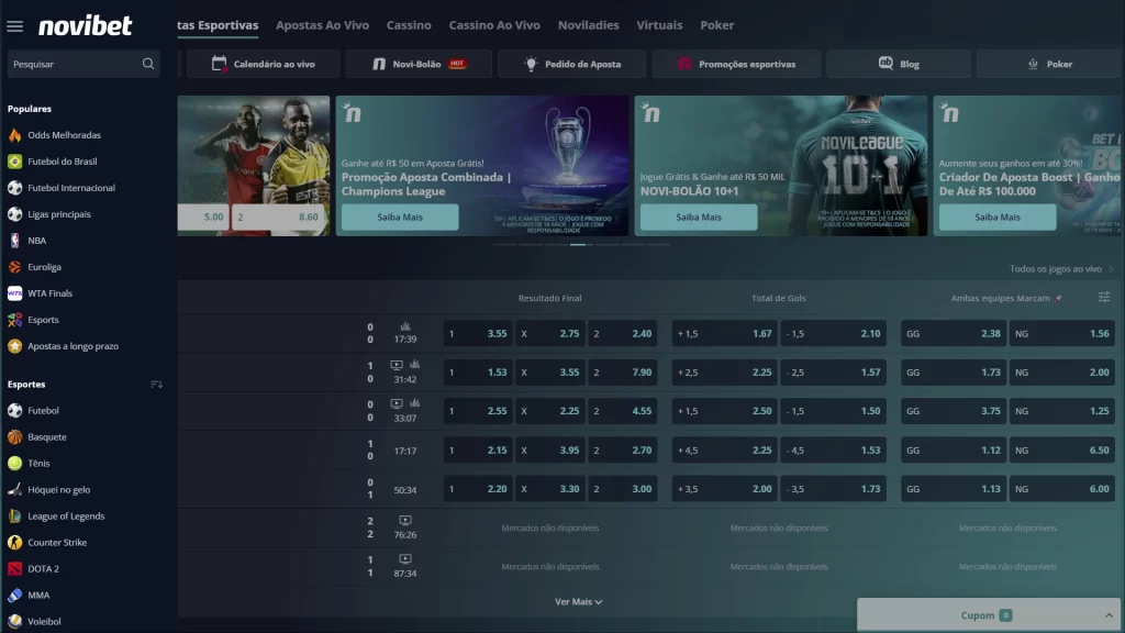 O Futebol na Novibet é o carro-chefe, com a maior quantidade de campeonatos e mercados, mas ele não é nem de longe a única boa opção para os seus palpites.
